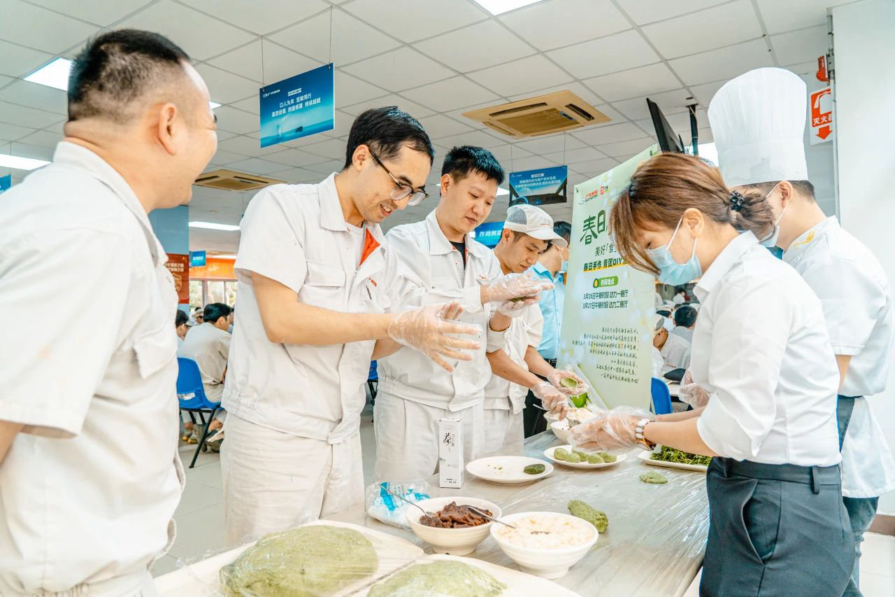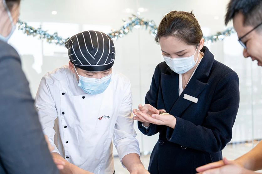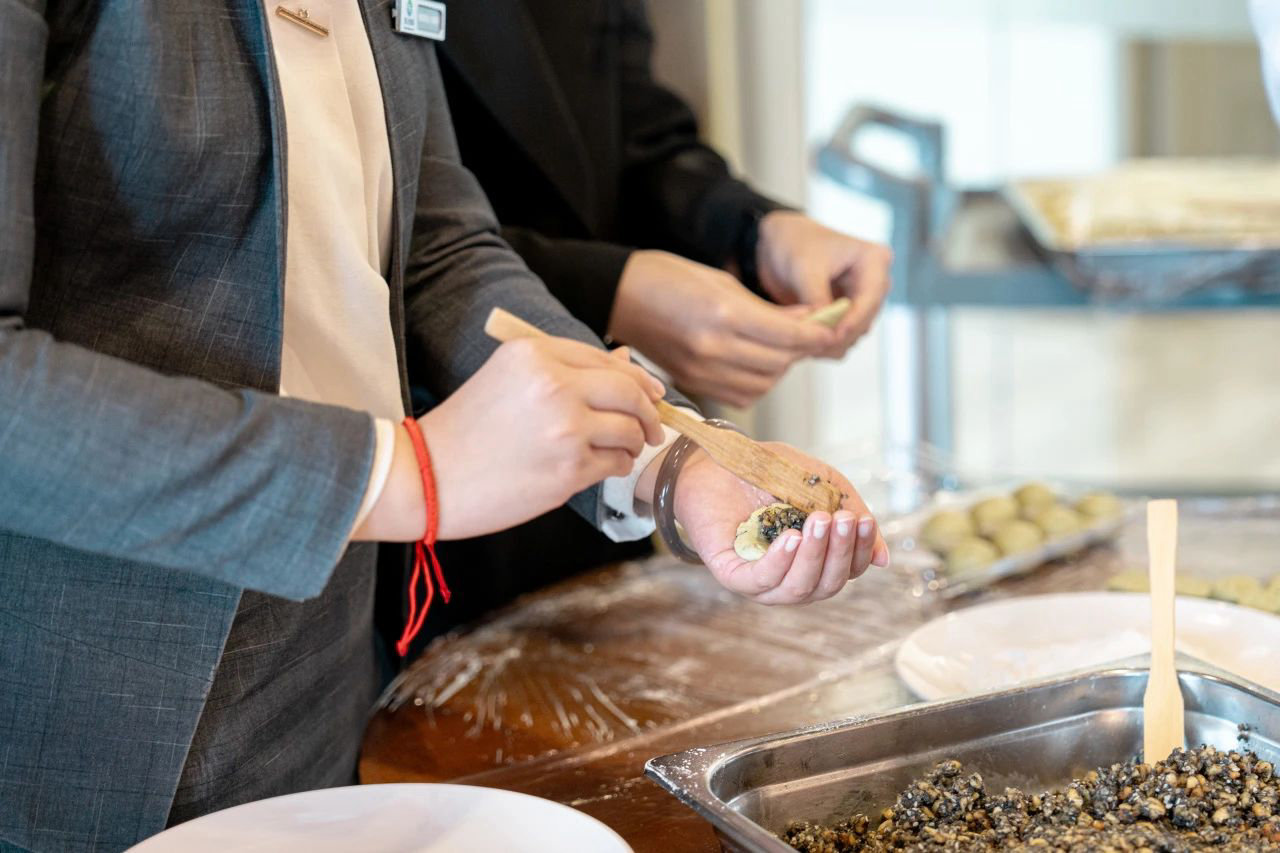与此同时,餐厅点心师也带着青团制作食材来到现场,为参加讲座的客户员工进行手把手教学,让人们都能体验手工的魅力,寓教于乐,寓“识”于食。?
