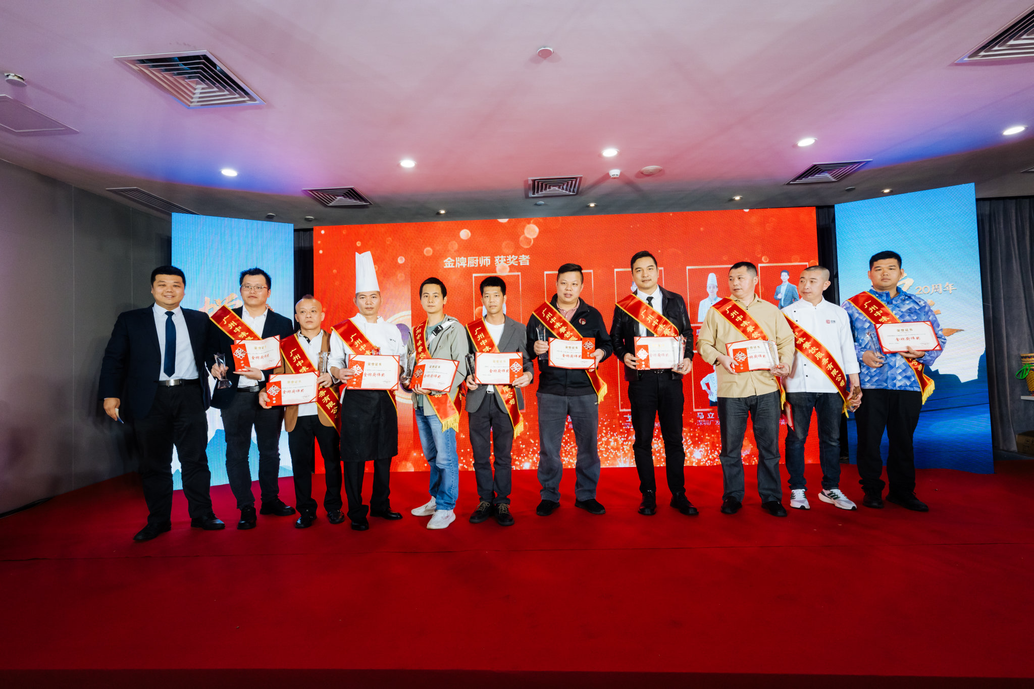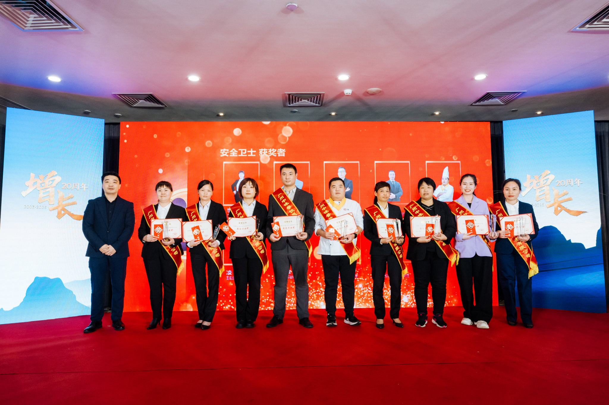 会议上,“安全卫士”、“金算盘”、“金牌厨师”、“卓越服务”、“卓越经营”、“星级团队”、“优秀员工”等奖项一一颁发,数十位质朴而写满了坚定的身影从项目餐厅一线走到众人瞩目的台前,手捧沉甸甸的奖杯见证着他们的奉献与热情。